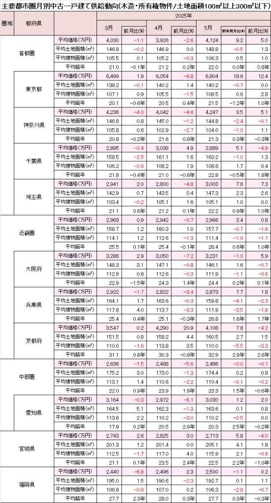 福岡県は+0.2%の2,500万円と連続の上昇。平均築年が同じ3月の価格を上回った。