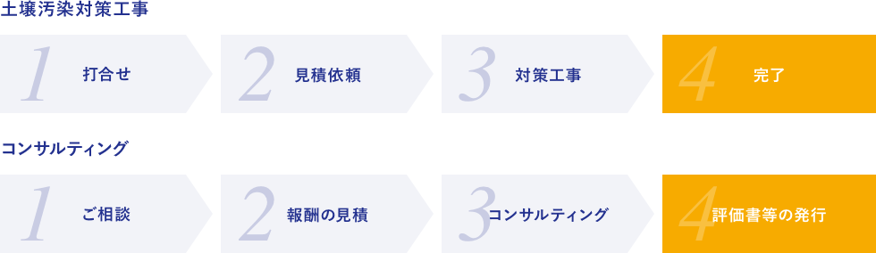 不動産取引の中で、問題となる土壌汚染リスクに対し、どのように解決すべきかわからないような時、土壌汚染に関するご相談内容に的確にお応えいたします。また、一連の調査結果に土壌および不動産における専門的な経験・知識を加え、取引形態・土地の用途に応じて、コストミニマムを考慮した周辺環境に負担の少ない最適な対応策をご提案します。