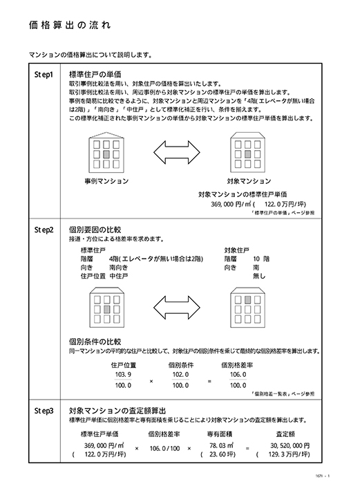 - システム登録されている多数の事例の組合せの中から平均、やや安め、やや高めの価格を自動算出できる仕組みがあります。(特許取得済み)これによって、相場感に乏しいエリアでも価格傾向を把握することが出来ます。