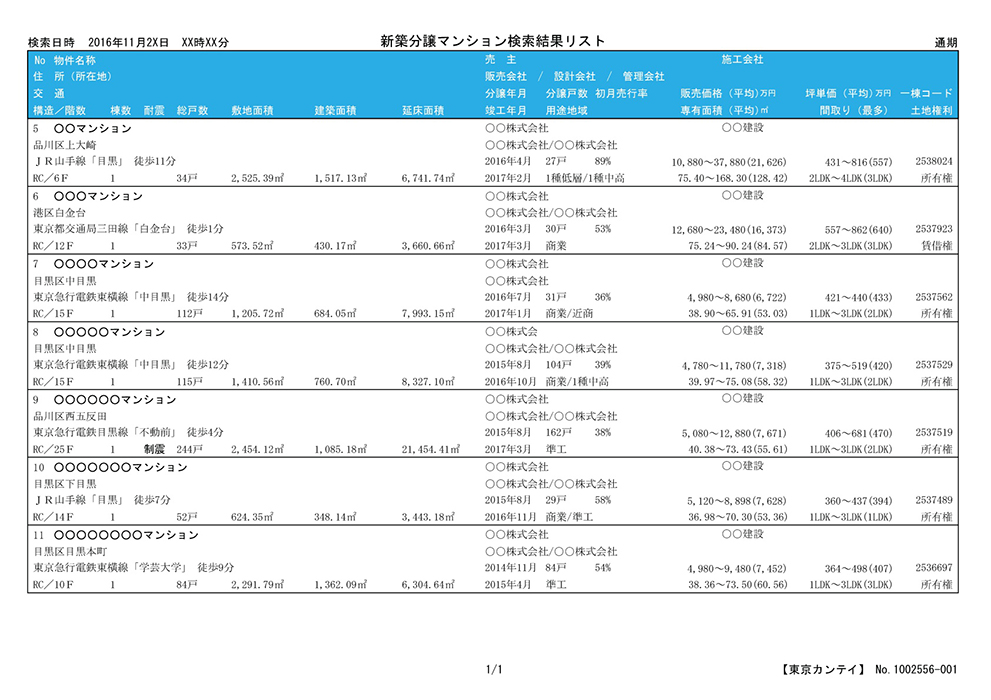 これにより、各マンションの分譲計画を確認でき、供給状況から市場のニーズを確認できます。