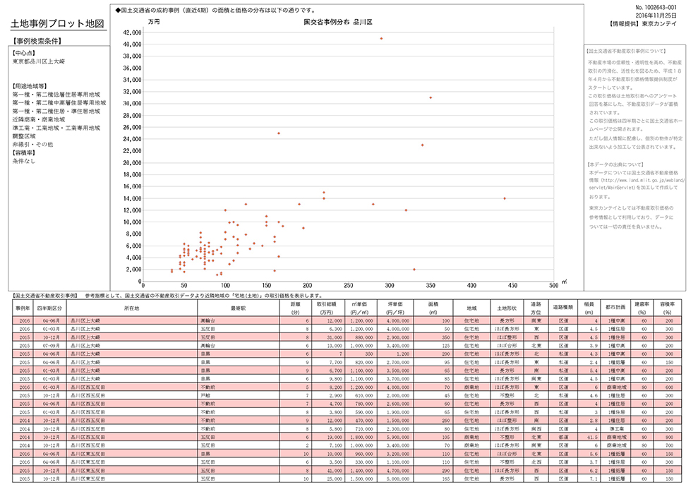 戸建て用地の仕入れや価格相場を把握するツールです。東京カンテイの土地事例は、一定の条件に補正した単価で表示されます。これにより接道状況、地型、面積規模などそれぞれ異なる個別性の高い事例が比較し易くなります。