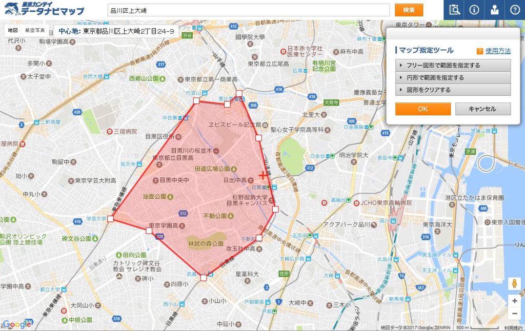①調べたいエリアを指定します。