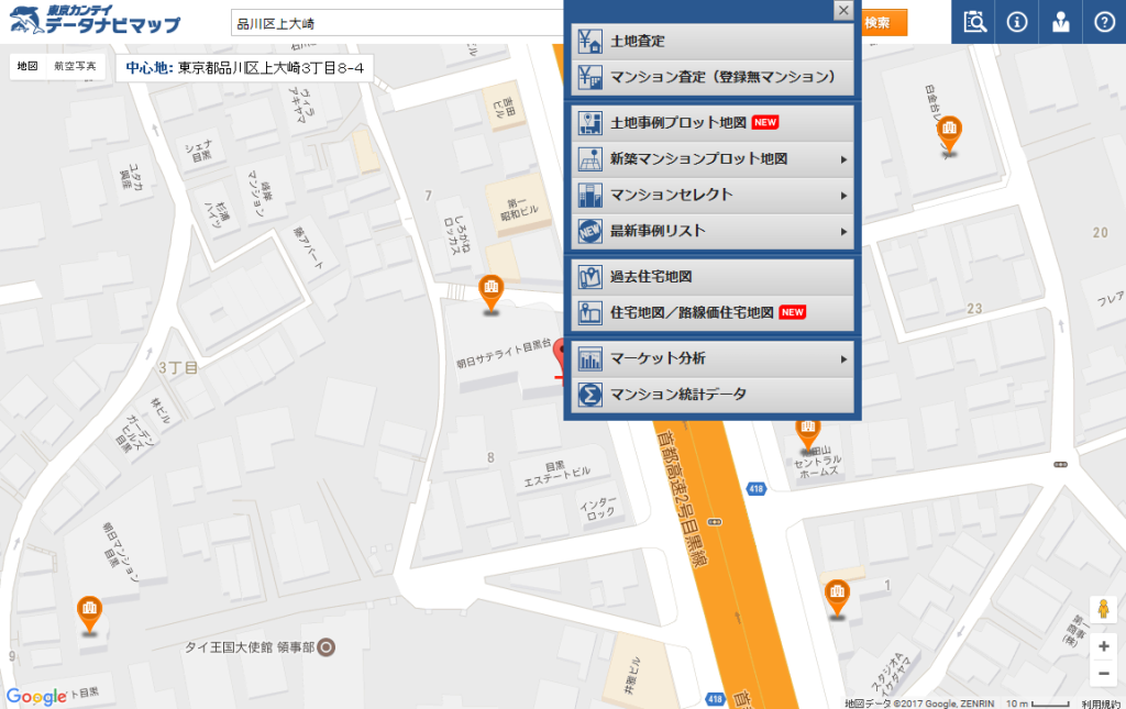 東京カンテイのデータサービスが地図からご利用いただける新プラットフォームです。取得方法の異なる商品を、地図やアイコンをクリックすることで簡単に取得できます。さらにストリートビューを使えば、調査対象物件の立地条件などを把握できます。不動産データを取得しながら、ネット上での現地確認も可能です。「住宅地図」などの地図情報から、「最新事例リスト」の事例情報まで、不動産調査業務に必要な情報が簡単に取得出来ます。